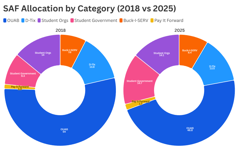 Over the past decade, Student Government has steadily claimed a larger share of the Student Activity Fee, a mandatory $40-per-semester charge pooled from every Ohio State student to fund campus life.
